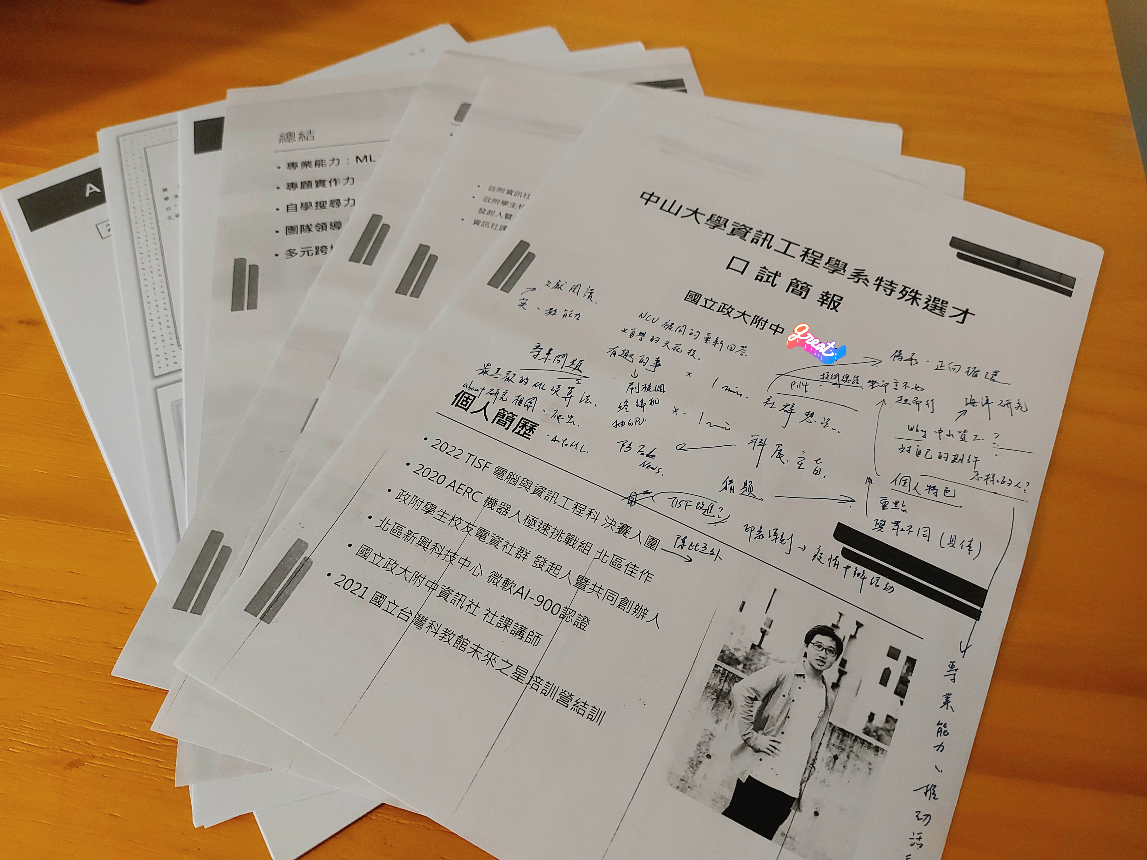 (書審基本上大原則隨便 Google 資訊就很多了,這邊就不特別分享;小細節寫成一篇文章分享好像又有些太發散,所以想請我幫忙看備審、給建議的,歡迎直接聯絡我~)